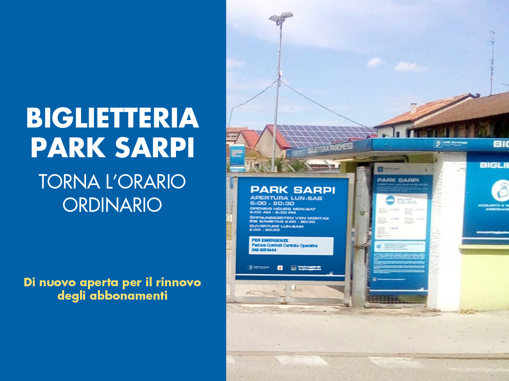 - Presso la biglietteria del Park Sarpi, aperta dal 25 di ogni mese al 5 del mese