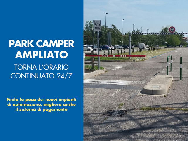Il mese di agosto ha portato a grandi migliorie per il parcheggio camper. Sono infatti terminati i lavori di ampliamento e di posa dei nuovi impianti di automazione, per un sistema di pagamento ancora più efficiente.