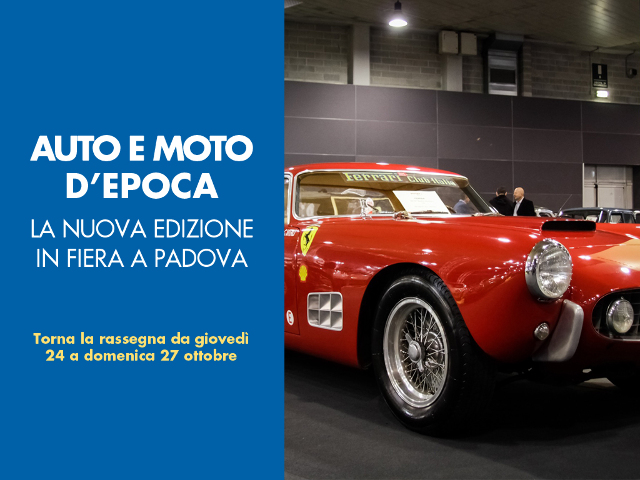 Da giovedì 24 a domenica 27 ottobre arriveranno in Fiera a Padova oltre 5.000 veicoli d’epoca, per un evento tanto prestigioso quanto emozionante. “Auto e Moto d’Epoca” Padova, infatti, rappresenta da anni l’appuntamento internazionale più importante per gli appassionati di motori e della loro cultura.