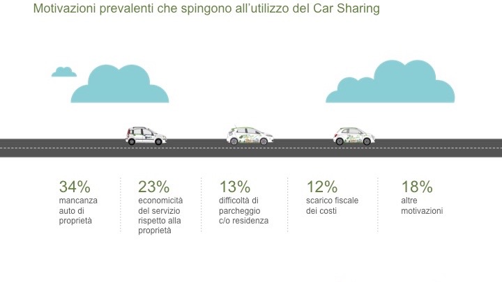 Le motivazioni prevalenti che spingono all’utilizzo del Car Sharing Padova sono la mancanza di un’auto di proprietà da parte degli utenti e l’economicità del servizio rispetto all’automobile privata, seguite dalla deducibilità fiscale dei costi e dalla difficoltà di parcheggio nei pressi della propria residenza o del centro storico cittadino.