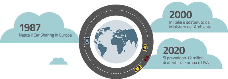 L’idea dell’auto condivisa è nata in Svizzera nel 1987 e si è diffusa in tutti i paesi d’Europa e del Nord America sviluppando modelli e tecnologie sempre più raffinati. Secondo uno studio autorevole, entro il 2020 si prevede che la sua espansione toccherà i 12 milioni di utenti europei e statunitensi, con un parco di 200 mila vetture e ricavi per 7 miliardi di euro.