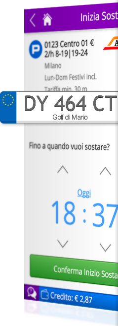 - Inserisci la tua targa (una volta inserita potrai salvarla tra i preferiti). Puoi utilizzare il servizio con targhe diverse;