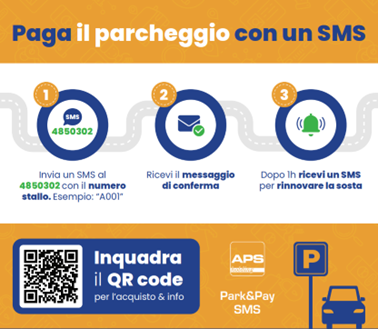 Park&Pay offre anche la possibilità di pagare il parcheggio tramite SMS. Gli utenti possono semplicemente inviare un messaggio al numero 4850302 di APS con il numero dello stallo occupato. Questa opzione è ideale per chi predilige soluzioni rapide e dirette.